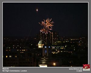 The views from the all four sides of the penthouse of New Zealand House are stunning. We sat in disbelief as all of the iconic buildings were in our eyesight. How far can you see? As the afternoon turned into evening and then into night, the view became even more spectacular. Then there were fireworks! Who planned that? |