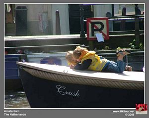 Saturday was spent on a tikitour around the sites of Amsterdam. It is a very pretty city with a charm of its own. The canals give the city real character and add vibrancy with all of its water traffic. Although reknown for its liberal attitude, we didn't see any smelly cafes and were tucked up in our tent at night when there may have been flashing coloured lights. We're obviously past all this excitement!! |
