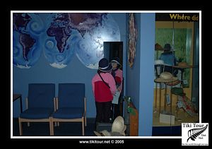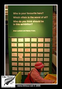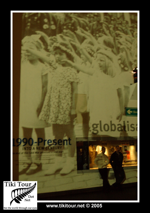 While Eimi and Michelle went and made postcards Scott waited around for the multimedia show to start. Expecting things to pop up on monitors it was a surprise to see every flat space in the museum being used to project images on to! |