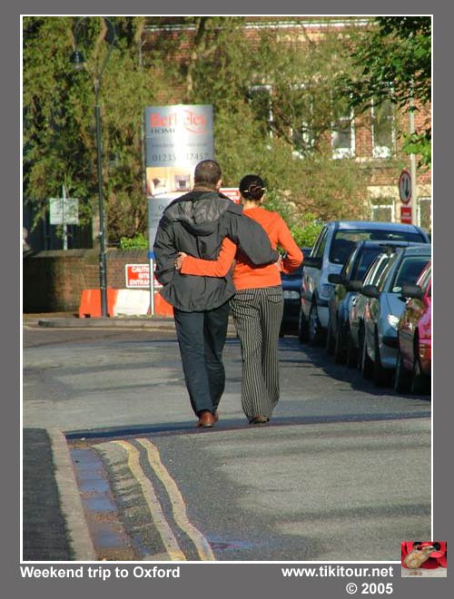 A couple out enjoying a stroll around Oxford. |