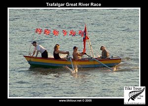 The Trafalgar Great River Race was held over a 22 mile course that started at Richmond and ended at Greenwich. Kick off was 230pm and when we got home after Kohanga around 7pm boats were still paddling past our place. Some of the crews looked absolutely shattered!