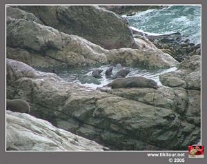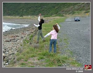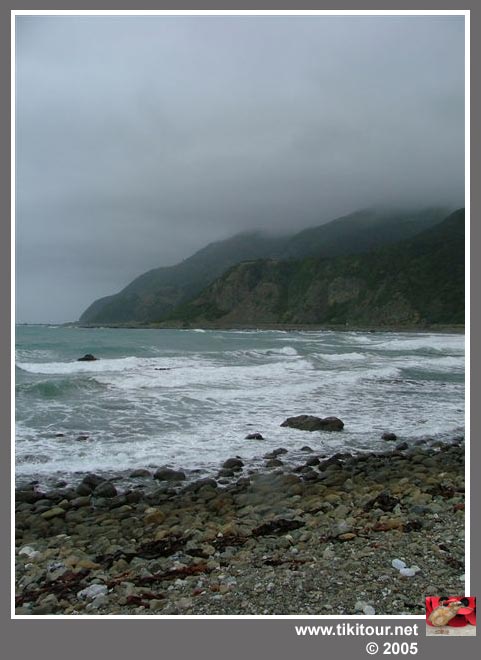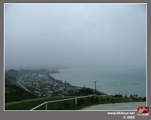Looking back over Kaikoura | Looking down the coast towards the rain we would soon be driving through. |