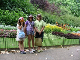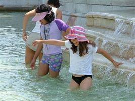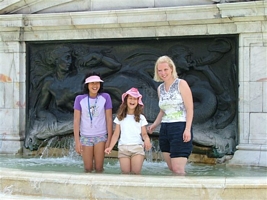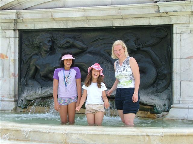 Whetu, Eimi and Michelle in the Queen's fountain | Whetu and Eimi enjoying the fountain |