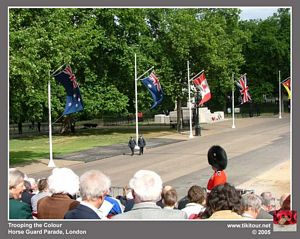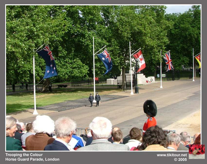 This year it was the 1st Battalion The Irish Guards turn to parade their colour's on Horse Guard's Parade with the Duke of Abercorn taking the salute. And so it was with Jason and his parents that I headed down to watch the parade while Michelle and Eimii headed in to NZ House to put the finishing touches to the Kohanga props for Saturday nights performance (more of that later).