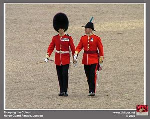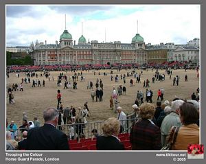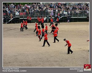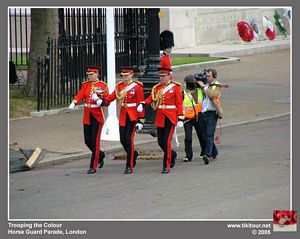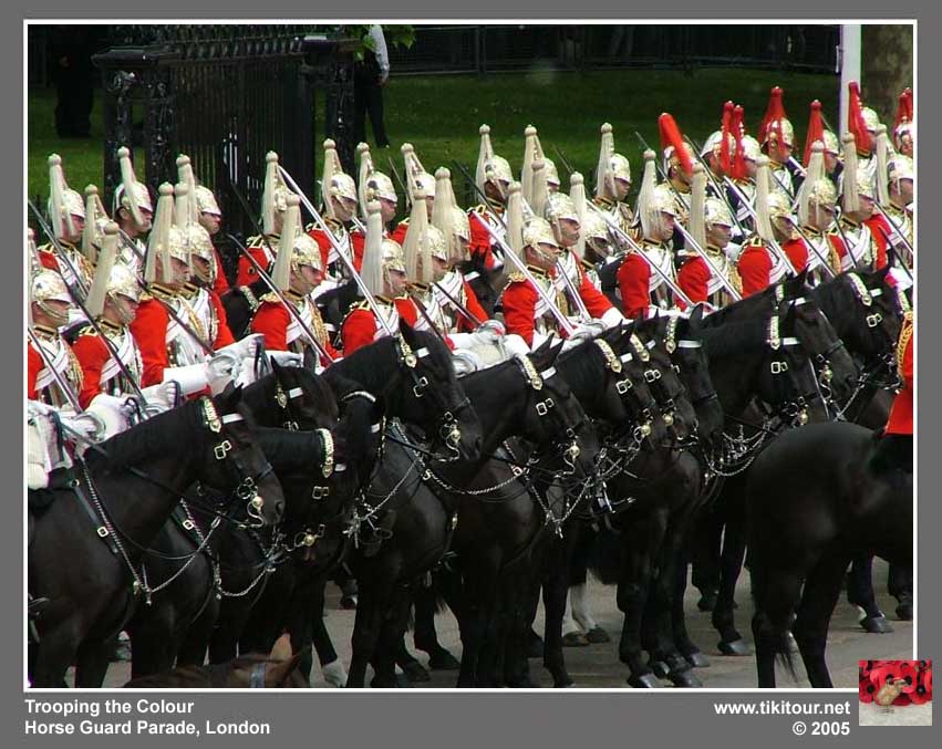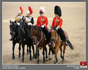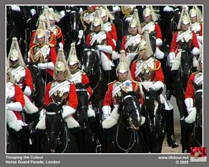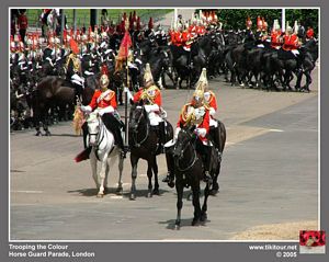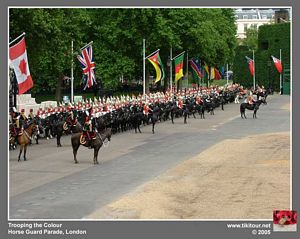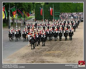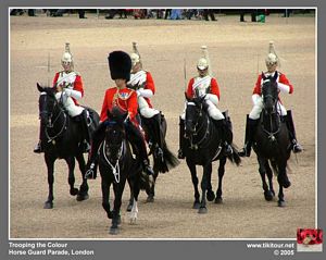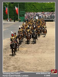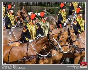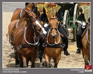 The Kings Troop, Royal Horse Artillery riding on Horse Guard's Parade. |