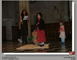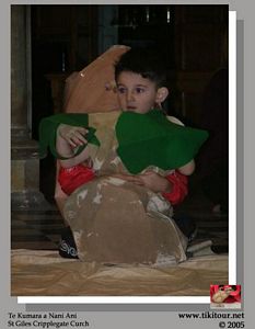 Nga tamariki made their parents and kaiako very proud with their performance. Eimi was the train driver and the children entered singing Tereina nei. There were more waiata before a translation of The Enormous Turnip (aka Maori style: Te Kumara a Nani Ani). Poor Nani Ani was unable to pull the enormous kumara from the ground so she called Koro Maru for some help. With Koro, there was no budging so they called for nga kotiro. Still nothing. Neither when nga tama joined in the pull. It wasn't until a cheeky little ant began biting ankles. The children cried oi, oi, oi as their long line collapsed and out came the kumara. |