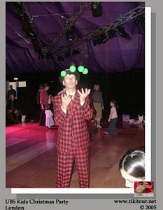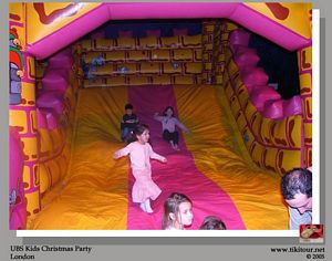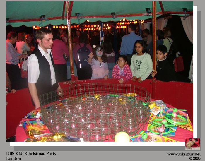 Scott's work Christmas party for the children was like nothing we have ever seen. It was held in a massive series of marquees with more entertainment than you knew what to do with. There were walls of bouncy castles, different sizes for different ages. The stage area had non-stop entertainment - more of that bouncy get up and join in stuff that we 'loved' at Butlins. It's obviously an English family pasttime. We tried our luck at the arcade before paying a visit to a New Zealand Santa! Of course, with all this comes the other English pasttime - queues. It was a fabulous afternoon which certainly had us in the Christmas party spirit. |